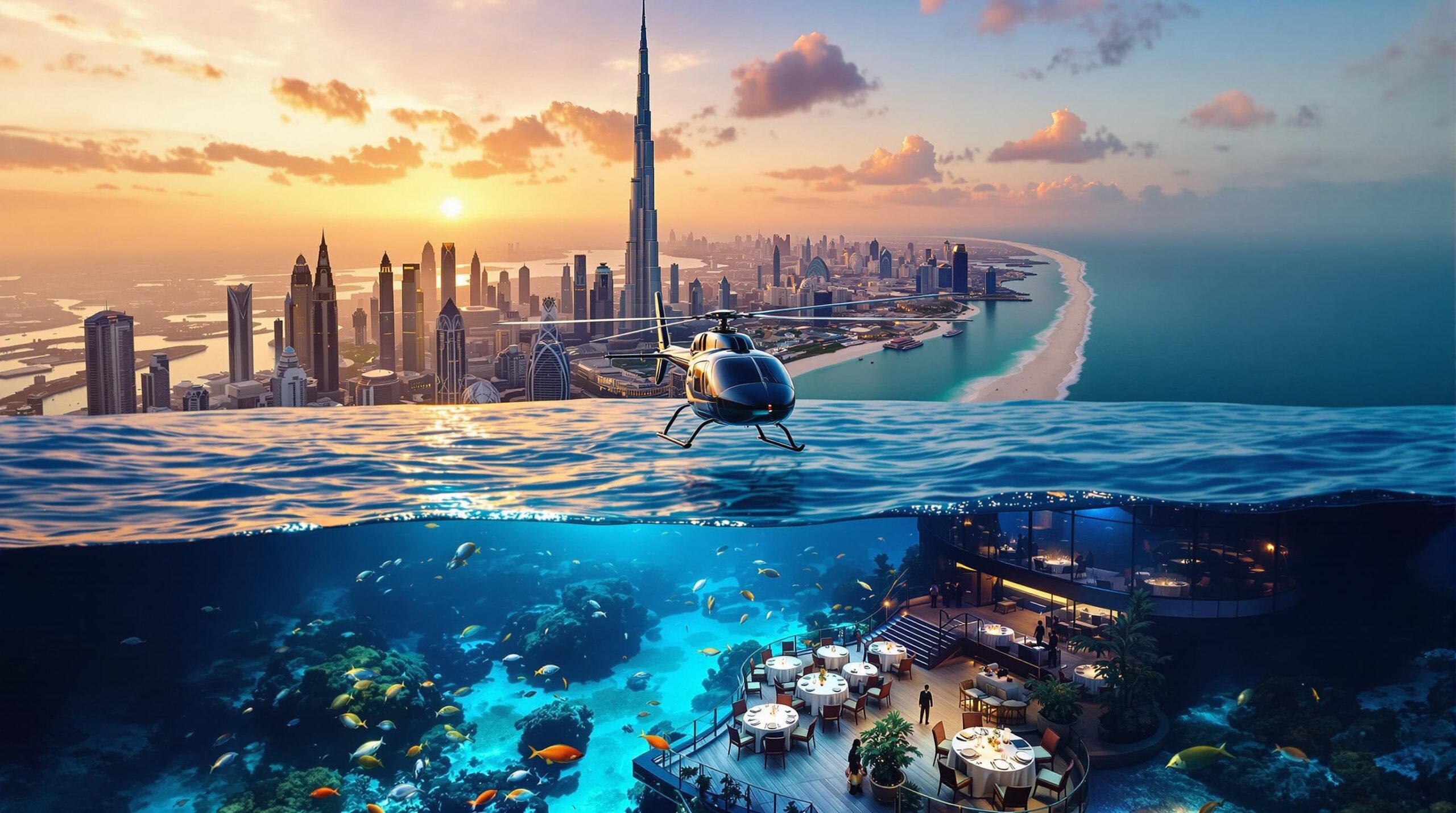 - Helicopter Tours: Fly over Dubai’s landmarks like Burj Khalifa and Palm Jumeirah.